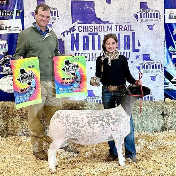 Home Sires Winners Sales Contact Us Winners 2023 | 2022 | 2021 | 2020 | 2019 | 2018 | 2017 2024 Champion Dorper 2024 Fort Worth Stock ShowShown by Kendyl Keeter Reserve Dorper 2024 Fort Worth Stock ShowShown by Luke Krippendorf Champion DorperReserve AOB 2024 Wisconsin State FairShown by Jaxcyn McCartney Champion Hair Sheep 2024 New Mexico State FairShown by Shaylee Priest Champion Hair Sheep 2024 Eastern New Mexico State FairShown by Logan Dunlap Champion Hair Sheep 2024 Arkansas Youth ExpoShown by Addie Munise Champion Hair Sheep 2024 Tulsa State FairShown by Falynn Thomas Champion Lightweight 2024 State Fair of TexasShown by Campbell Gross Champion Dorper 2024 AKSARBENShown Whitney Williams Champion Hair Ewe5th Overall 2024 Arkansas Youth ExpoShown Liam Brandon Reserve Hair Sheep 2024 Arkansas Youth ExpoShown by Noah Brandon Reserve Hair Sheep 2024 Tulsa State FairShown by Jaycee Oldenburg Reserve Hair Sheep 2024 AKSARBENShown by Lainey Popp Champion and Reserve Dorpers 2024 N.A.I.L.E.Shown by Henry Slough 3rd Overall Dorper 2024 N.A.I.L.E.Shown by Jaycee Oldenburg Champion Dorper 2024 State Fair of TexasShown by Kendyl Keeter Champion 4-H Dorper 2024 California State FairShown by Samantha Asmus Champion Dorper 2024 San AntonioShown by Brandon White Reserve Dorper 2024 San AntonioShown by Lauren Thompson Reserve Dorper 2024 Houston Livestock Show & RodeoShown by Carson Kirkskey Champion Hair Sheep 2024 OYEShown by Jefferson Pye Champion Lightweight 2024 OYEShown by Callie High Reserve Hair Ewe 2024 OYEShown by Tyller Mitchell 2023 Grand Dorper Wether 2023 NAILEShown by Mallory Snider Raised by Kelly Reserve Dorper Wether 2023 NAILEShown by Brandon White Raised by Kelly Champion Hair Sheep 2023 OYEShown by Jancy Rippetoe Reserve Hair Sheep 2023 OYEShown by Jana Stacy Champion Hair Sheep Ewe 2023 OYE Shown by Jackie Oldenburg Champion Dorper 2023 Houston Livestock ShowShown by Hadley Johnson Champion Dorper 2023 San Antonio Stock ShowShown by Reagan Slough Multiples Times Supreme Female Shown by Paisley Lord Champion Dorper 2023 San Angelo Stock ShowShown by Avery Walton Champion Dorper 2023 Fort Worth Stock ShowShown by Hadley Johnson Reserve Champion Dorper 2023 Fort Worth Stock Show Shown by Chandler Kirkscey 2022 Champion AOB Market Lamb 2022 National Western Stock ShowShown by Hazen Pruett Champion Dorper 2022 NAILE Shown by Evan Sylvester Champion Hair Market Lamb 2022 Tulsa State Fair Champion Dorper Market Lamb 2022 OYE Shown by Kinley Pruett Reserve Dorper Market Lamb 2022 OYE Shown by Alec Anderson Champion Dorper Market Lamb 2022 Houston Livestock Show Shown by Blake Meyer Reserve Champion Dorper Market Lamb 2022 Houston Livestock Show Shown by Evan Sylvester Champion Dorper Market Lamb 2022 San Antonio Stock Show Shown by Payton Hanley Reserve Champion Dorper Market Lamb 2022 San Antonio Stock Show Shown by Hadley Johnson 2021 Champion Dorper Market Lamb 2021 N.A.I.L.E. Congratulations Layne Allen! 2nd Place Heavy Dorper 2021 State Fair of Texas Congratulations Hadley Johnson! Champion Hair Sheep 2021 Oklahoma State Fair Congratulations Alec Anderson! Reserve Hair Sheep 2021 Oklahoma State Fair Congratulations Kenna Gay! Champion Dorper 2021 Houston Livestock Show Congratulations Sydney Thedord Reserve Champion Dorper 2021 Houston Livestock Show Congratulations Peyton Hanley Reserve Champion Dorper 2021 San Angelo Stock Show Congratulations Sydney Thedford 2nd Place Heavy Weight 2021 San Angelo Stock Show Many Division Champions TX Jackpots Congratulations Evan Sylvester Champion Hair Sheep 2021 OYE Congratulations Kenna Gay 2020 Reserve Champion Dorper 2020 State Fair of Texas Congratulations Hadley Johnson Champion Dorper 2020 N.A.I.L.E. Congratulations Whitney Williams Reserve Champion Dorper 2020 San Angelo Stock Show Congratulations Zane Walker Reserve Dorper 2020 San Antonio Stock Show Congratulations Sydney Thedford Champion Dorper 2020 Heart of Texas Jackpot Congratulations Blake Meyers Reserve Champion Dorper 2020 State Fair of Texas Jackpot Congratulations Blake Meyers Champion Dorper 2020 Kentucky State Fair Congratulations Perkins Family Champion AOB 2020 Ohio Youth Expo Congratulations Jacob Roeth Champion Dorper 2020 Houston Livestock Show Congratulations Sydney Thedford Reserve Champion Dorper 2020 Houston Livestock Show Congratulations Evan Sylvester Champion Lightweight 2020 Houston Livestock Show Congratulations McKenna McLaughlin Champion Dorper 2020 Heart of Texas Congratulations Madison McCulloch 2019 Champion Hair Sheep 2019 Tulsa State Fair Congratulations Anderson Family Champion Dorper 2019 Houston Livestock Show Congratulations Cassidi DeArmond Reserve Champion Dorper 2019 Rodeo Austin Congratulations Kenzie Pardon 2018 Champion Dorper Wether 2018 Houston Livestock Show Congratulations Sydney Thedford Champion Heavyweight Dorper 2018 Houston Livestock Show Congratulations Chloe Britton Reserve Champion AOB 2018 N.A.I.L.E. Congrats Madison Fea Reserve Champion Dorper 2018 TBSS-San Angelo Congrats Cassidi DeArmond Champion Dorper Wether 2018 State Fair of Texas Congratulations Evan Sylvester Reserve Champion Hair Sheep 2018 Tulsa State Fair Congratulations Alec Anderson Champion Dorper Ewe 2018 Indiana State Fair Congrats Mitchell Family Champion AOB 2018 Ohio State Fair Congrats Roeth Family Champion Hair Sheep 2018 OYE Congratulations Alec Anderson Reserve Champion Dorper Wether 2018 San Angelo Stock Show Congratulations to Ross Sylvester & Family Reserve Champion Dorper Wether 2018 Houston Livestock Show Congratulations Rebecca Lambert 2017 Champion Dorper Ewe 2017 N.A.I.L.E. Junior Dorper Show Congrats Abigail Wilson and Family Reserve Hair Wether 2017 Tulsa State Fair Congrats to the Gonzales Family Reserve Champion Dorper Wether 2017 San Angelo Stock Show Champion Dorper Ewe 2017 Kansas State Fair Reserve Champion Dorper Ewe 2017 Kentucky State Fair